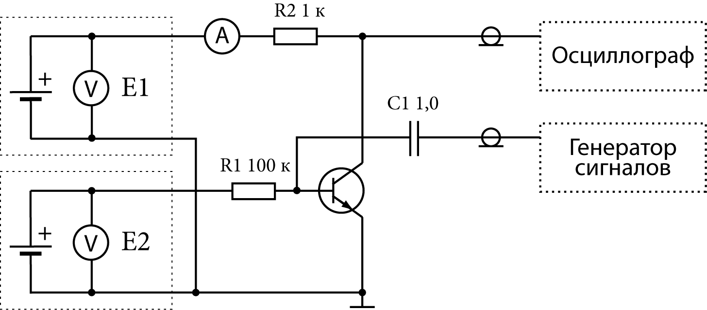 Для выполнения этого задания потребуется собрать схему рис. 4. Здесь и далее транизстор включен по схеме с общим эмиттером.